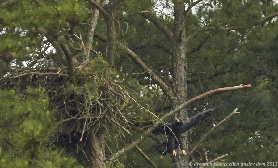 In the video: Wynd is way down below the nest. She is to the left of the trunk of the nest tree.