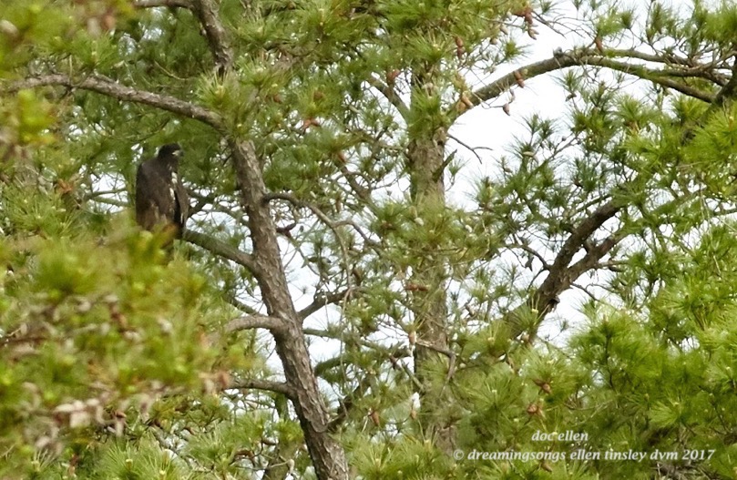 That is mom Kate on the lower branch and dad Petruchio on the upper one of a tall pine at the edge of their cove.