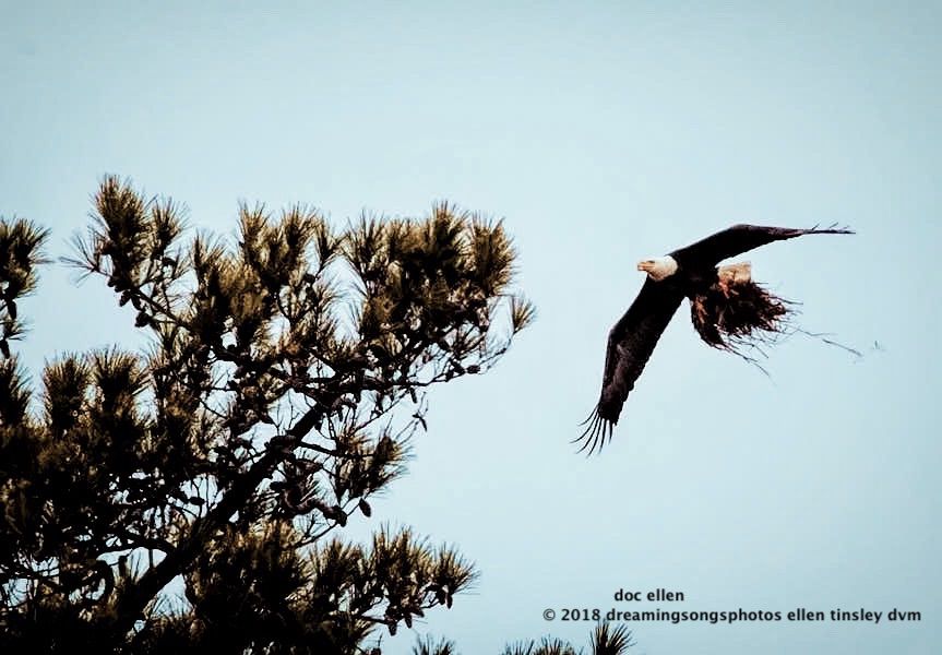 1) Petruchio came flying in, talons full of nesting material – a fair sized load.