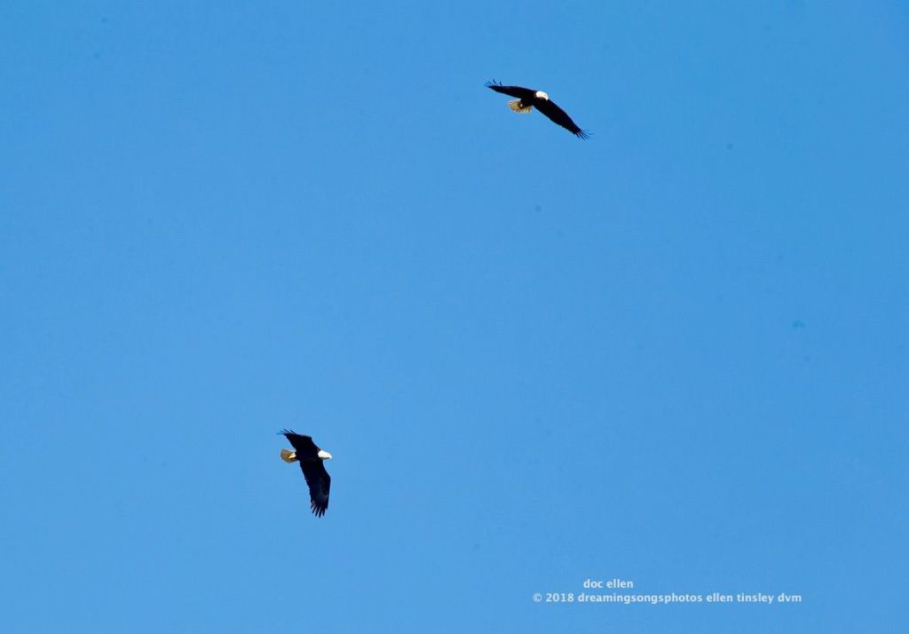 The parent bald eagles circled over head. Fearful to return to their nest because they might lead the human to it.