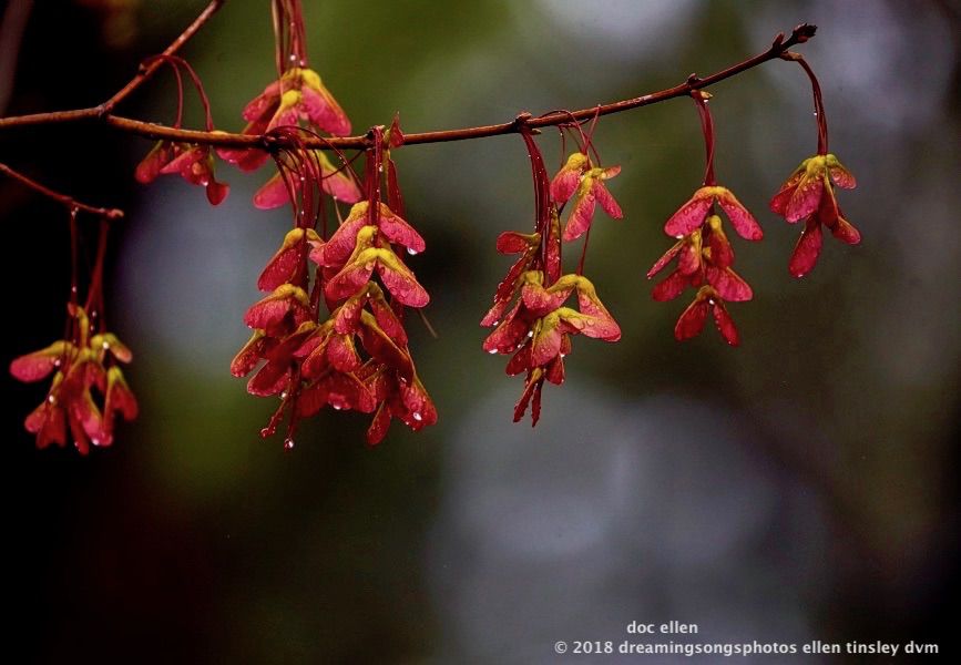 And a single raindrop caught my attention as it glittered against a dark green boldly veined leaf and reflected the surrounding trees.