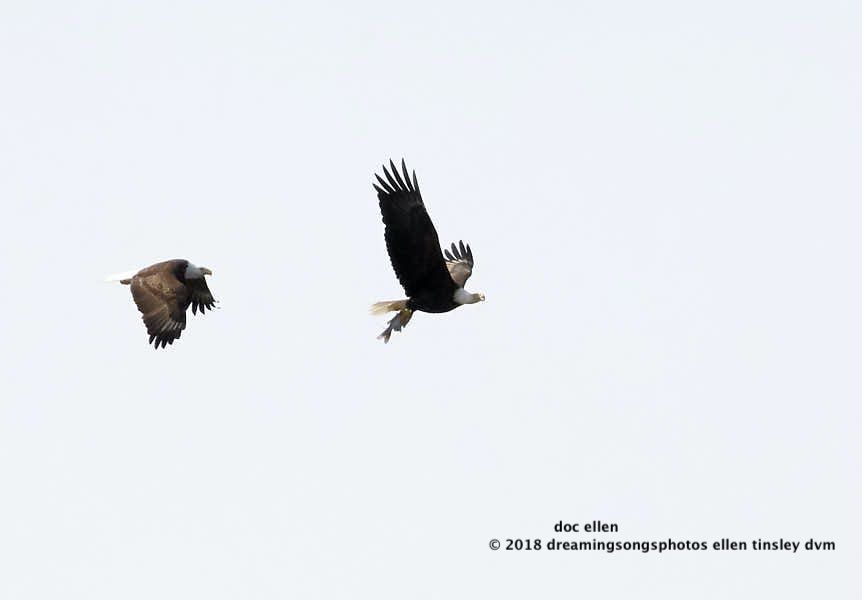 Godiva caught a big fish and Hershey gave her an escort back to the nest.