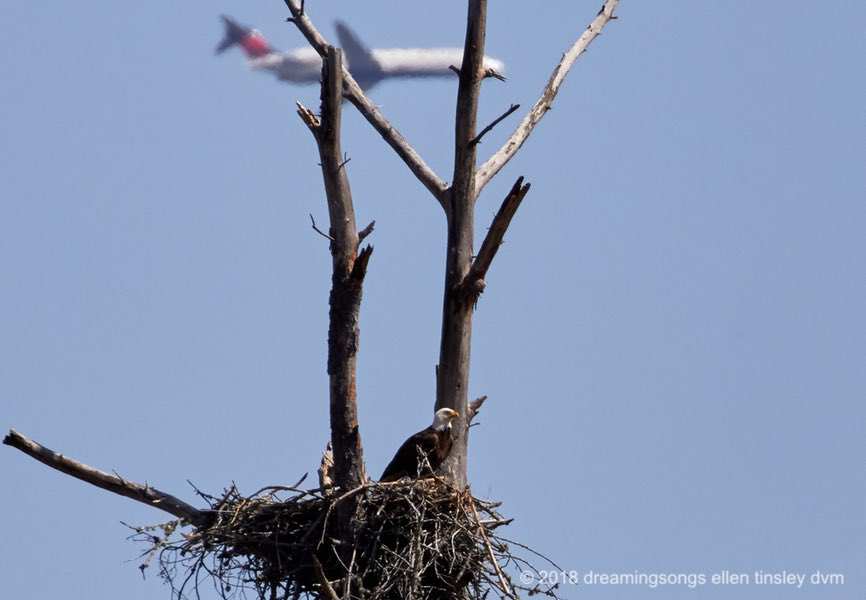 Mom and Dad come and go. Bring nest materials. Remove debris. Ignore the big bird in the sky.