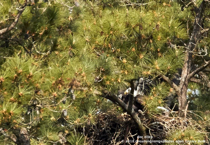 In the photo, Resolute had gotten up in the tree and dad Petruchio showed up with a fish.