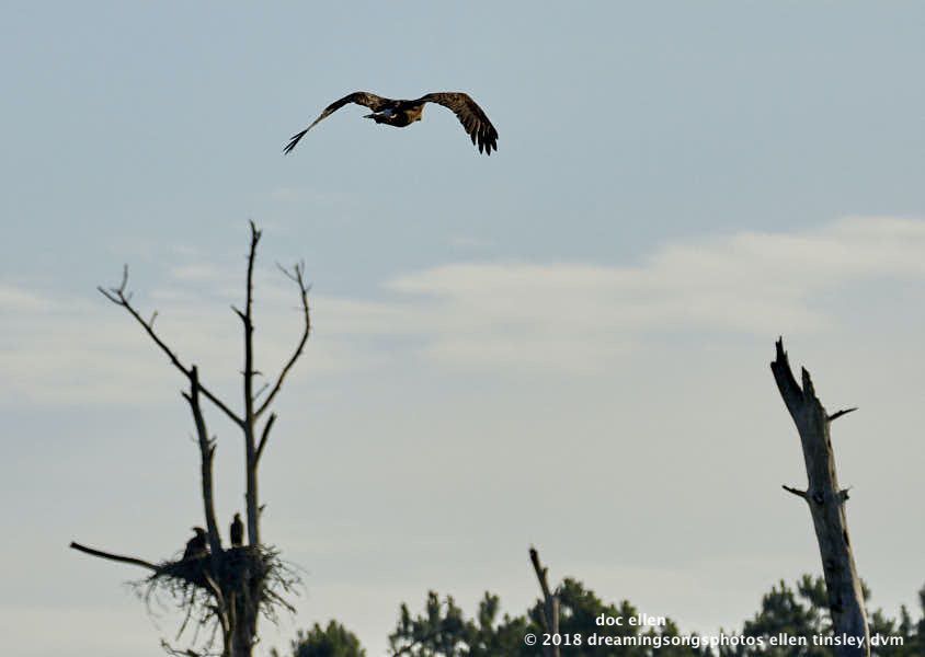 The ospreys have been in an uproar since their chicks hatched and are now a good size for eagle snacks.