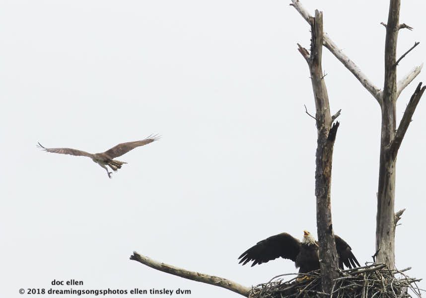 JL Eagle Nest report: Ranger Nest 1 photo, 1 video 06/27/2018 By neighdoctor June 28, 2018 JL Eagle Nest report: Ranger Nest 1 photo, 1 video 06/27/2018 Previous Post Next Post Since the eaglets have fledged from the Ranger bald eagle nest, the ospreys have been playing “king-of-the-eagle nest”. That is until Mom Ranger stopped by to make sure the neighborhood ospreys remembered the nest was hers! Mom Ranger Reclaims Nest 06:27:2018 35.712584 -79.036254 Jordan Lake, North Carolina, USA Share this:Share Click to share on Facebook (Opens in new window) Facebook Click to share on X (Opens in new window) X Like Loading... Related