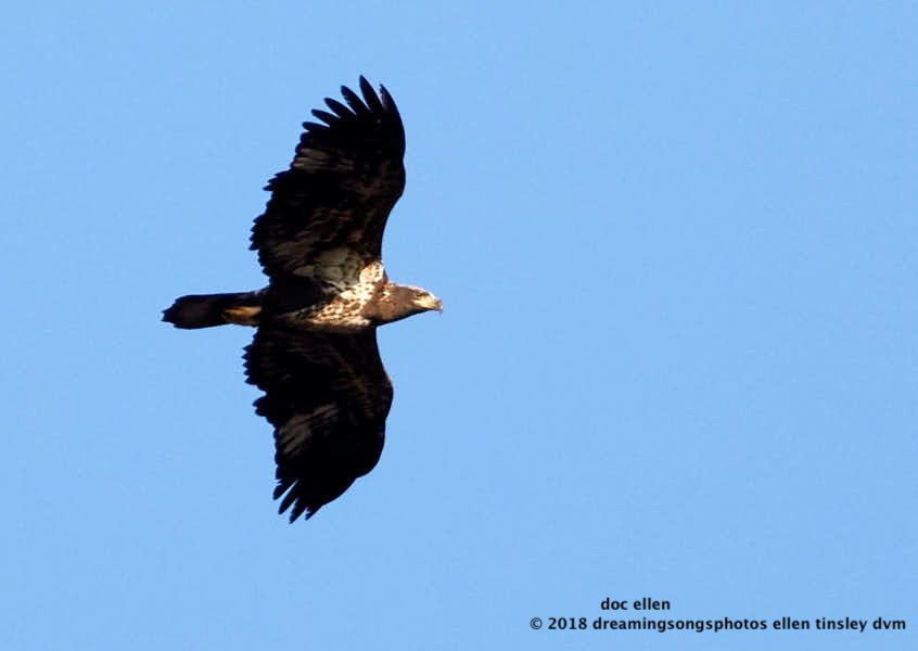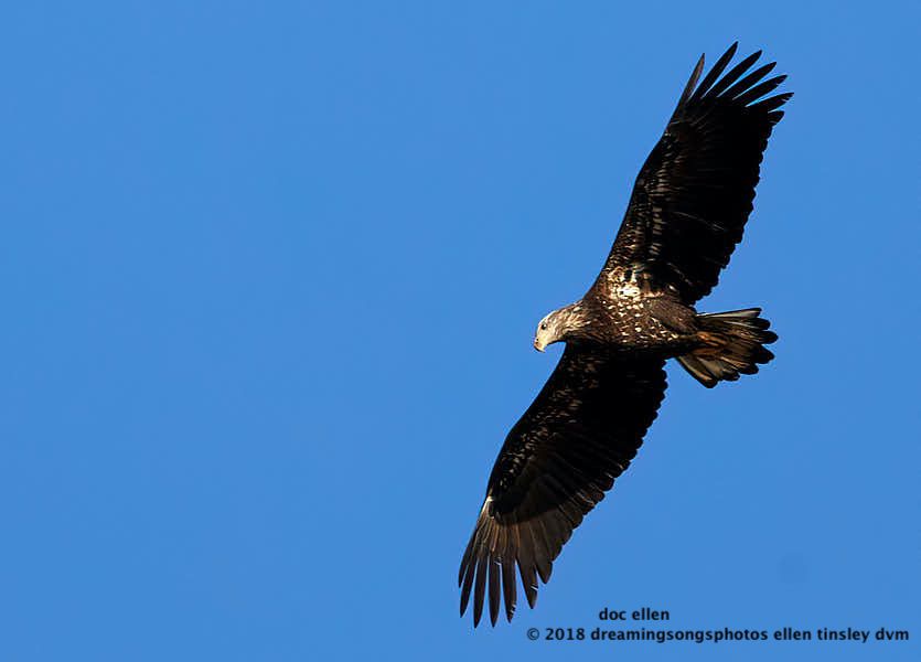 The last juvenile of my morning was this 3-year-old bald eagle watching for fish in the Haw River right at the dam.