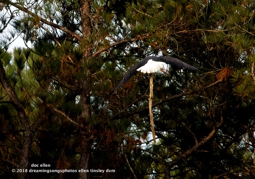 Petruchio lifted the branch all the way into the nest – more than 90 feet above the ground. The nest is unseen to his left.