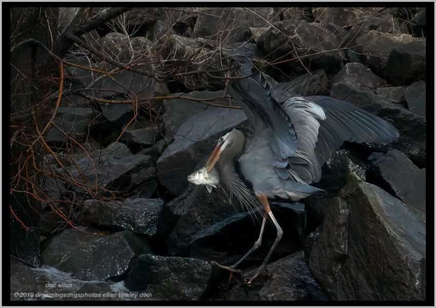 Jordan Lake Dam Neighborhood: Great Blue Heron By neighdoctor February 28, 2019 Jordan Lake Dam Neighborhood: Great Blue Heron Previous Post Next Post The great blue herons are putting on their breeding plumage. They glow against the dark rocks of the riprap. 35.712584 -79.036254 Jordan Lake, North Carolina, USA Share this:Share Click to share on Facebook (Opens in new window) Facebook Click to share on X (Opens in new window) X Like Loading... Related