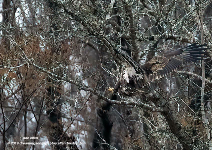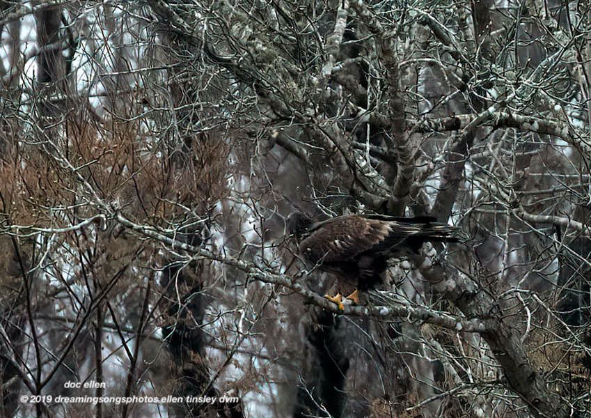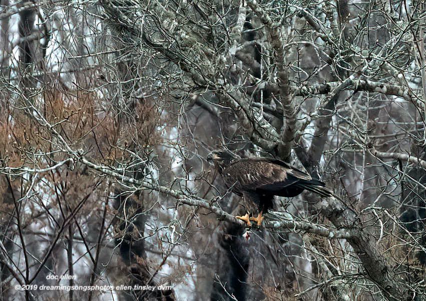 The young bald eagle, right at a year in age, had caught a fish from the Haw River, right below the Jordan Lake Dam.