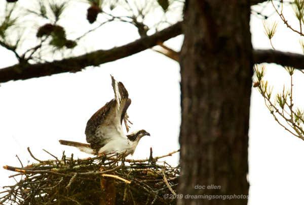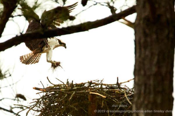 So the ospreys are getting their turn at nest-building. Did you already know where they were, orjust found them? Hope to see you tomorrow. Judy