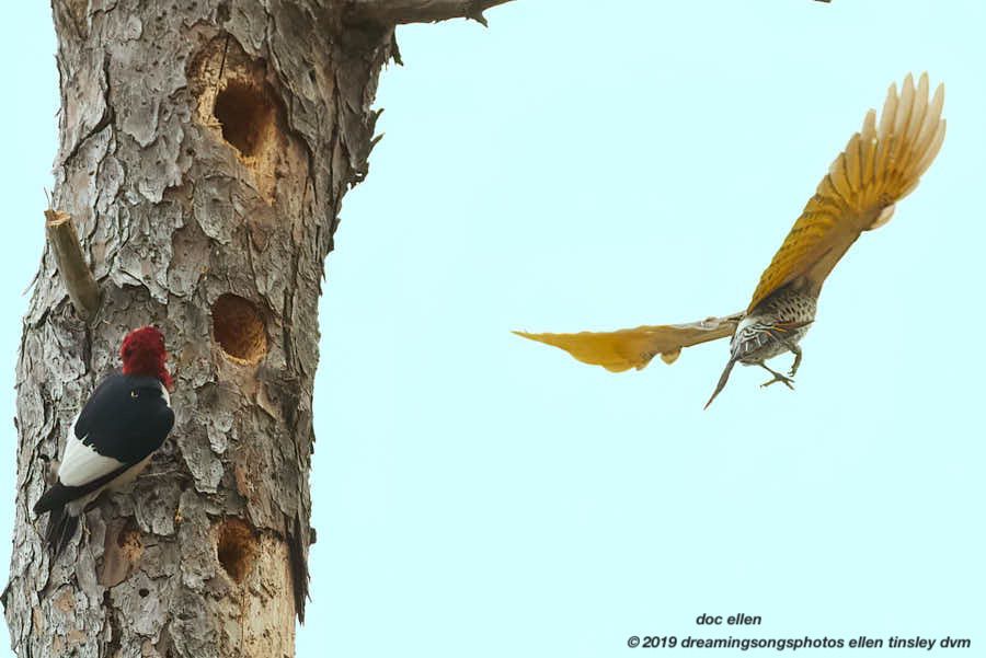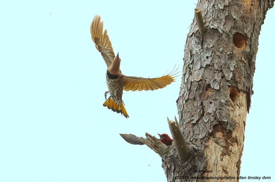 The northern yellow-shafted flicker can chisel out its own cavity but is not adverse to stealing a site.