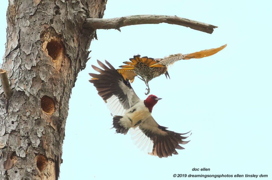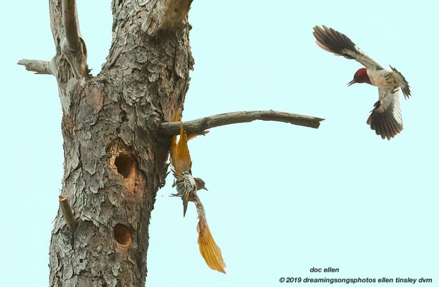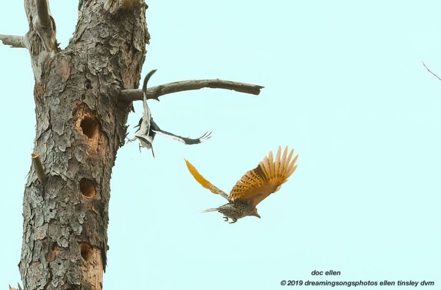 The flicker didn’t care which one she got, she was just determined to take a cavity for herself.