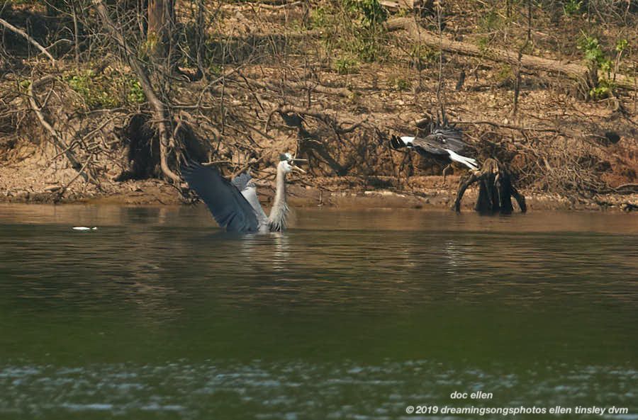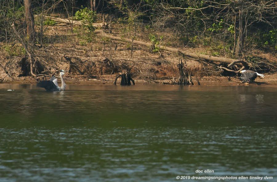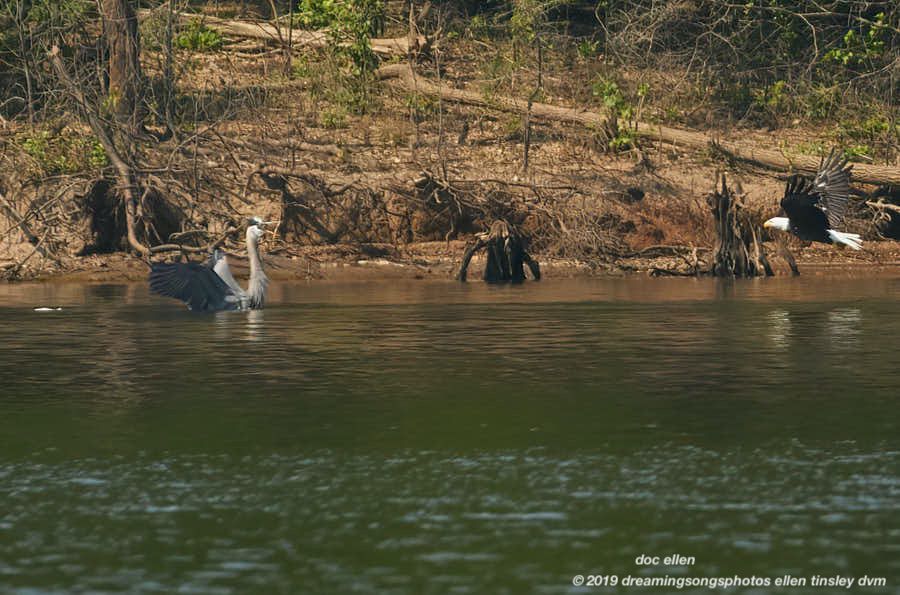 I realized that the eagle’s flight path was straight for the heron. Both birds wanted the fish.