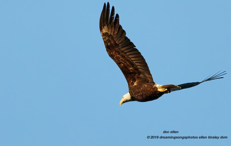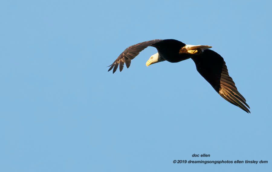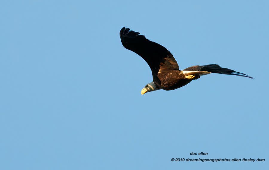 The last I saw of him, his wingtip shadow was edging across his chest as he flew into the shadow of the tree at the bend of the shoreline.