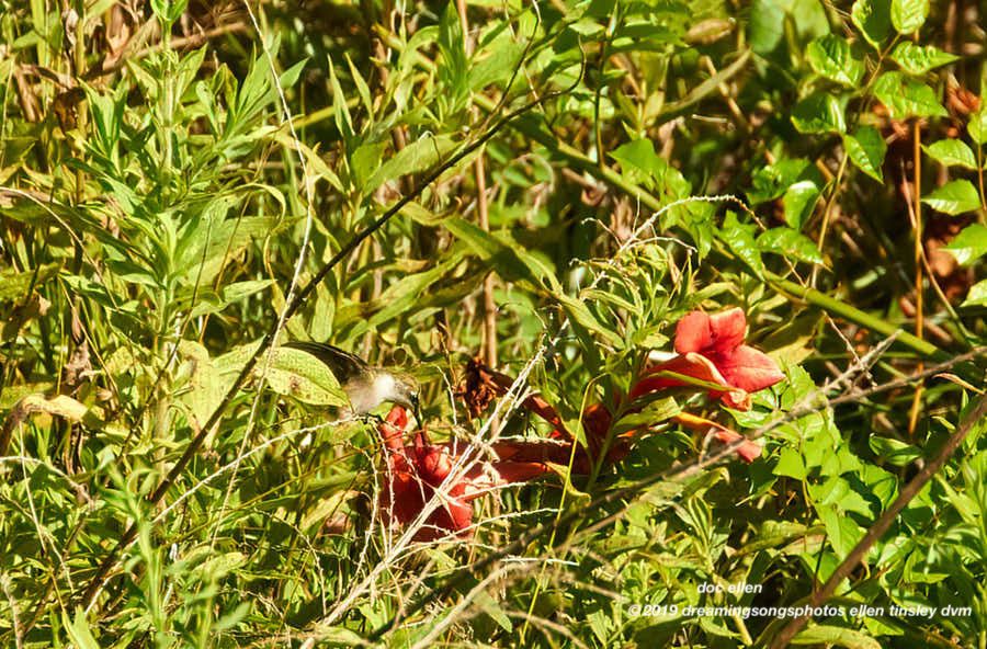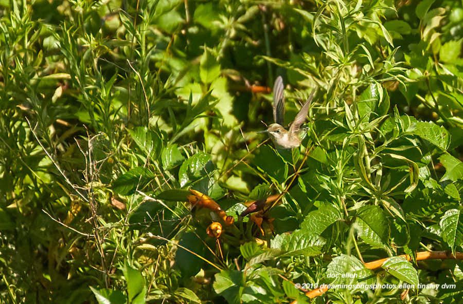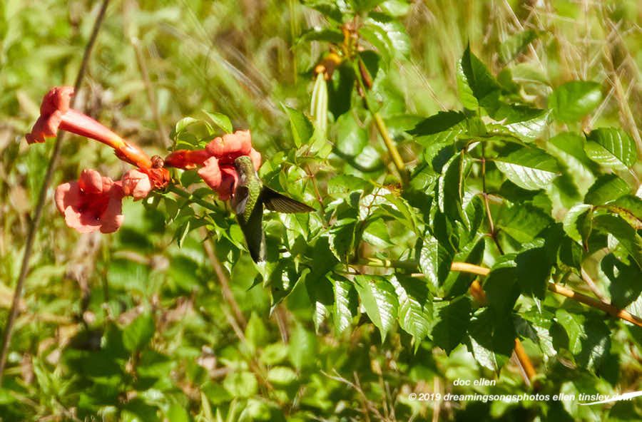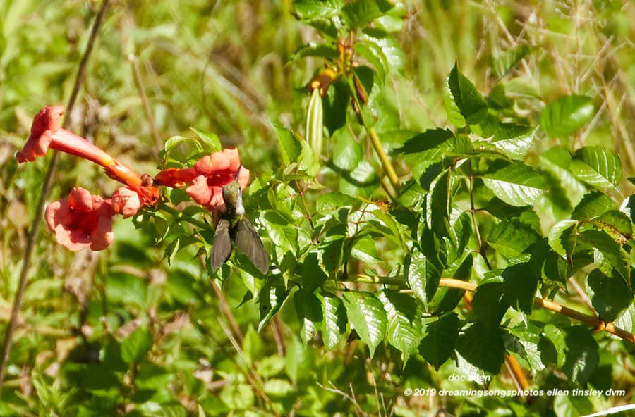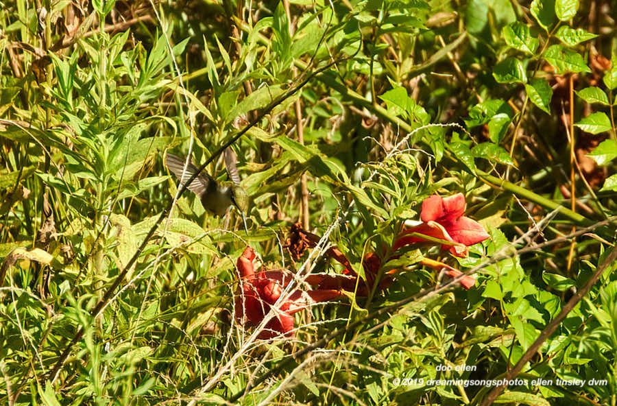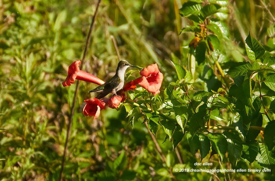 This ruby-throated hummingbird was busy feeding from the trumpet vines.