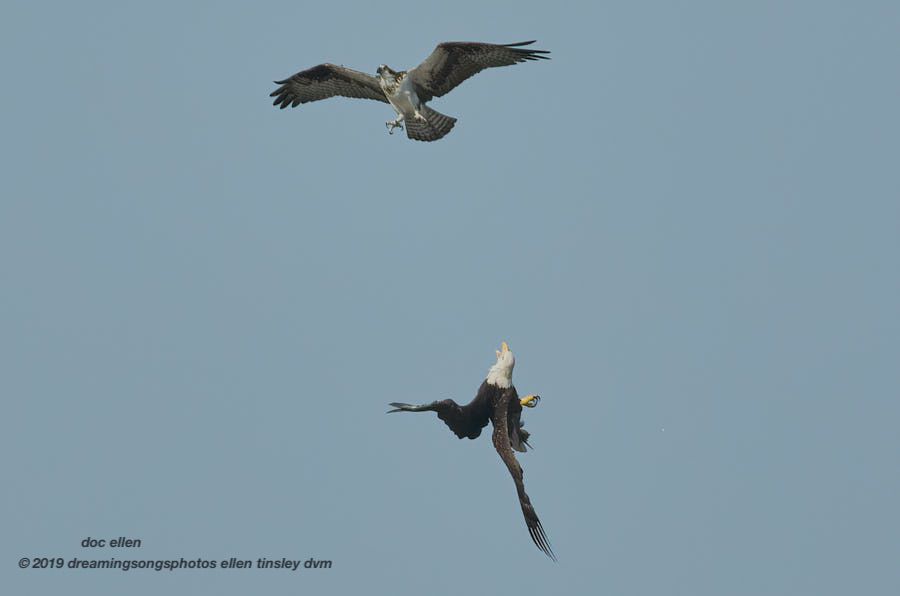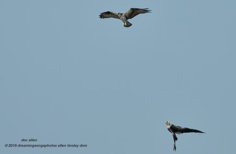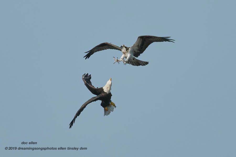 Momma osprey said no way was the fish that was destined for her fledglings going to go home with the bald eagle.
