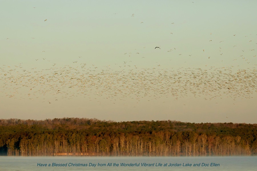 Jordan Lake: Christmas 2019 Greeting By neighdoctor December 25, 2019 Jordan Lake: Christmas 2019 Greeting Previous Post Next Post Jordan Lake: Christmas Day 2019 Blessings to all of you this bright clear day! Oh, and if you look closely you can see momma bald eagle Godiva flying just above the feathered cloud of gulls. 35.712584 -79.036254 Jordan Lake, North Carolina, USA Share this:Share Click to share on Facebook (Opens in new window) Facebook Click to share on X (Opens in new window) X Like Loading... Related
