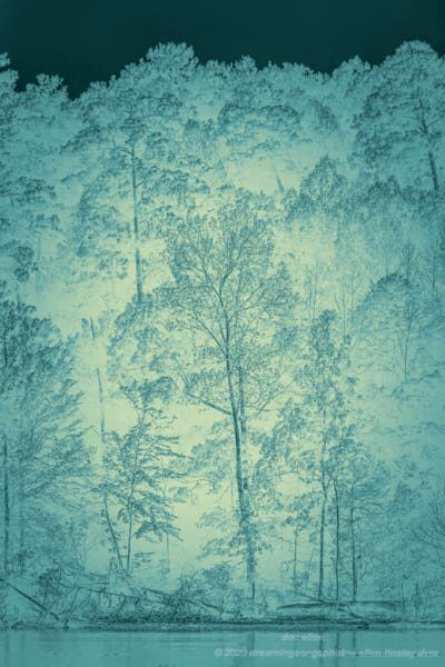 Somehow the tree caught the moonlight and illuminated the lake and my dreams. Please, come and dream beautiful cyan visions until we see what the morrow brings. Sleep well and at peace.