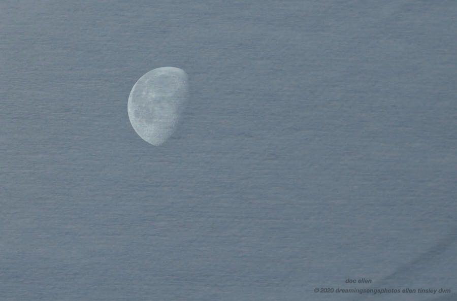 Fragile as onionskin paper, the dusk sky wrapped the moon in the offering of a translucent setting for gentle dreams this night. Sleep well. peace and grace, Doc Ellen
