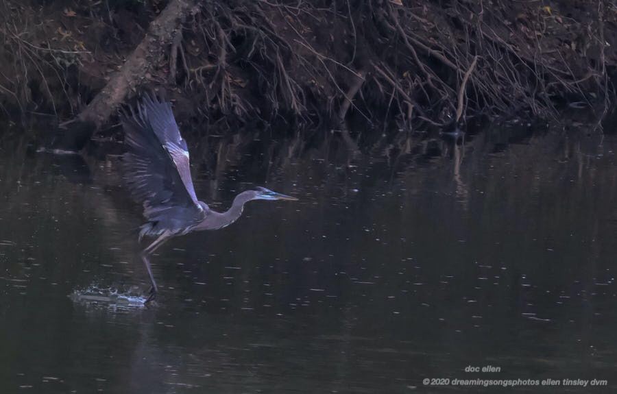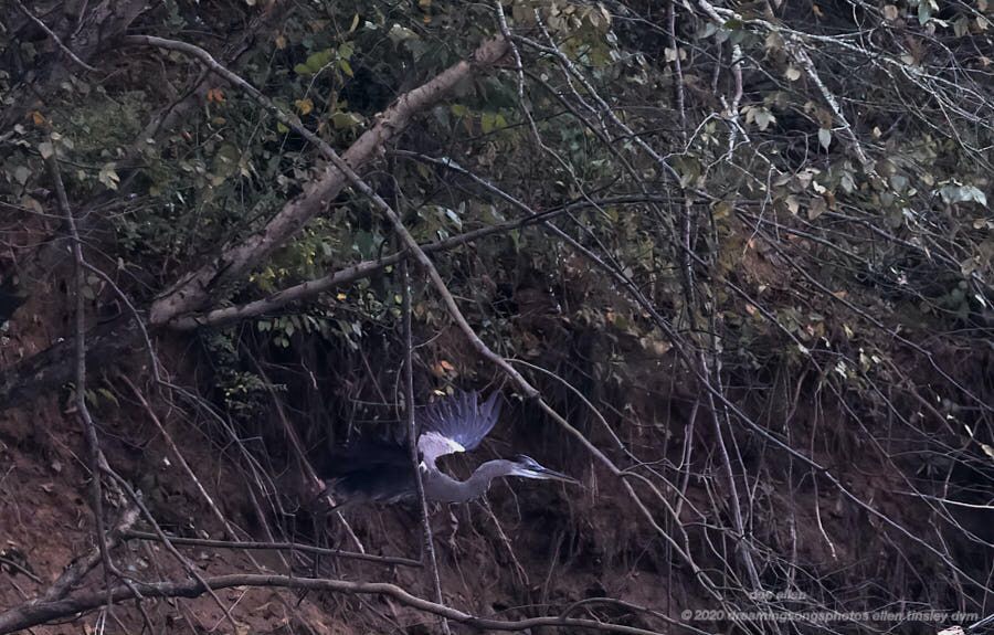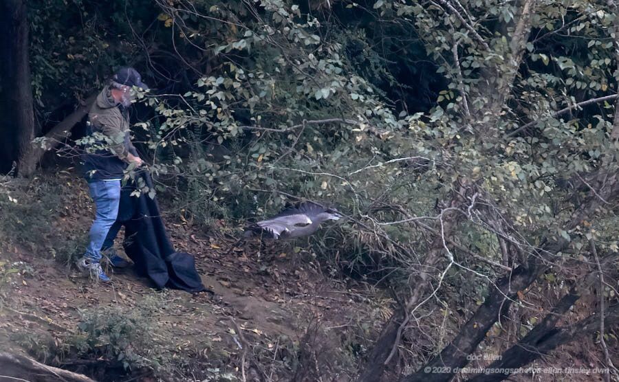 Jordan Dam, Haw River: RESCUE! Edde Burgess was waiting to photograph some bald eagles this morning when he realized that a great blue heron, across the Haw River, was tangled and caught in fishing line. Edde hiked all the way around the riprap to get to the heron. He managed to get the heron up on the bank and wrapped into his quilted jacket. While dodging the heron’s dangerous beak, Edde got the fishing line off of the bird’s leg. He quickly checked for any obvious injuries and finding none he gave the heron its’ freedom. Thank you Edde for giving the heron another chance at life. How I wish fishermen would always take their broken line and trash with them because not all birds have a friend like Edde show up at the right time. You can see Edde’s photography at https://www.facebook.com/EddeBurgessPhotography/ or @eddesbigyear