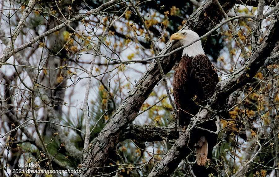Jordan Lake: to quote Mike Lemery from his marvelous documentary Pursuit – Eagles of Conowingo Dam, “sometimes you wonder what goes through the mind of an eagle”. I wonder just what this bald eagle was seeing and thinking as she ignored me and Captain Doug as though we had been noted, accepted and then dismissed for we were not food nor enemy. We were but a fleeting moment in the mind of this eagle.