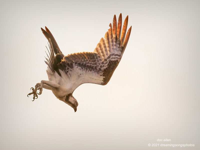 Jordan Lake Dam, July 13, 2021. I was tracking this new fisher to the dam this morning when he crossed between me and most of the rising sun. Suddenly this fledgling male osprey was a sepia image somehow brought to the present by my digital camera but relying on the experience of yesteryear’s fragile film. The osprey was composed of feathers, sharp talons, utter concentration and incredible beauty. I thanked him for blessing my day.