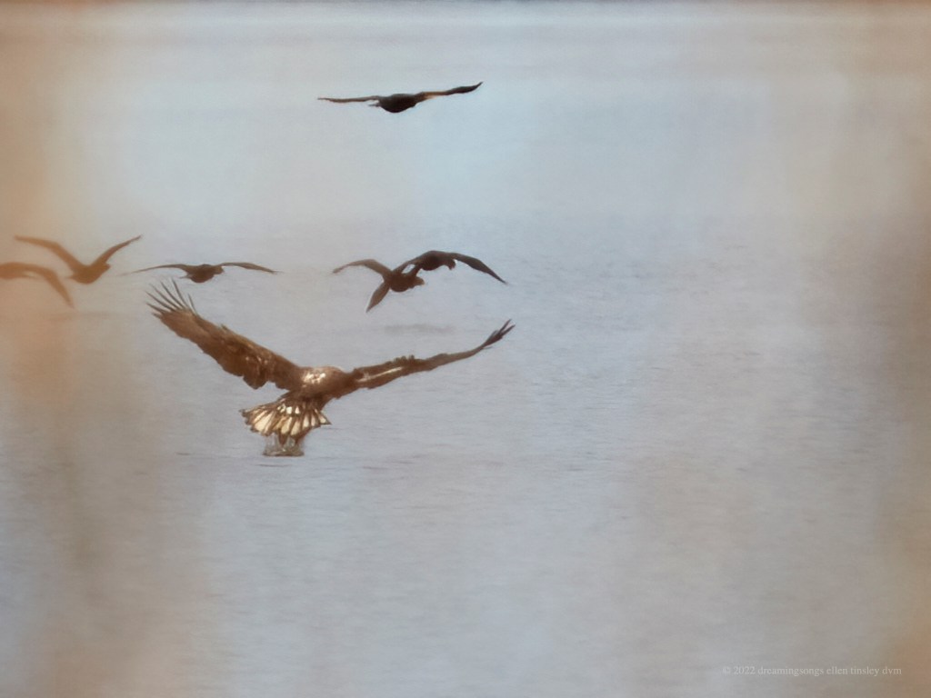 Jordan Lake. Doc is getting rather WORRIED. Besides the intrusion of humans, the parents at Big Pine Nest are now having to contend with the intrusion of immature bald eagles. All parent eagles have two or three or more sentinel trees, where they sit so they can watch the nest and watch the surrounding areas. The parents switch between the sentinel points during the day because that’s telling other eagles that inside the area where I am perching, I am staking out my territory: inside this area is MINE and you stay away. Well, with human intruders coming into the parking lot, that has pushed Loblolly and Pitch into using only two out of the three most frequent territory perches that they like. So, I watched as a three year old bald eagle came out from the area of the parking lot at shelter 8 and went fishing. Parent bald eagles do Not allow immature bald eagles to fish in the area immediately in front of their nest. As soon as Dad Pitch realized there was a problem, he turned around and chased the three-year-old eagle back out of the area. So you can see the problem: instead of being able to stake out a territory by using several sentinel trees, the parents are now limited to only two points because of the human intrusions and the immature bald eagles have noted this. I watched a second immature eagle pull this same stunt. This is very dangerous as we all remember what happened over at First Nest when an immature eagle got into the nest and ate the eggs there. I keep calling and sending emails to those who can close the gate. I ask all of you to please continue to go to the petition at https://chng.it/hRtHXdzg9z and sign/share and to call and to send emails to contacts found on https://www.facebook.com/100063040248633/posts/285177876926885/ . Thank you! (photos 1&2 is the 3-year-old bald eagle; photo 3 is Dad Pitch; pink smudge is from branches I was shooting through).