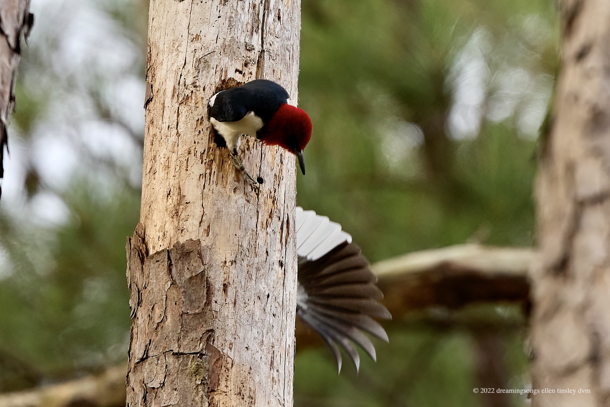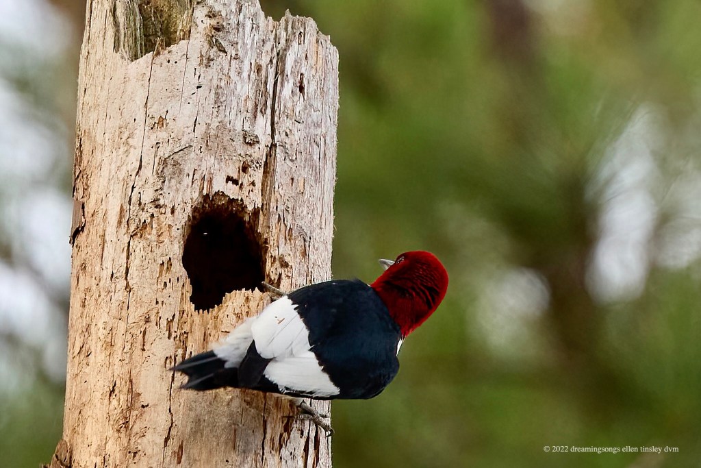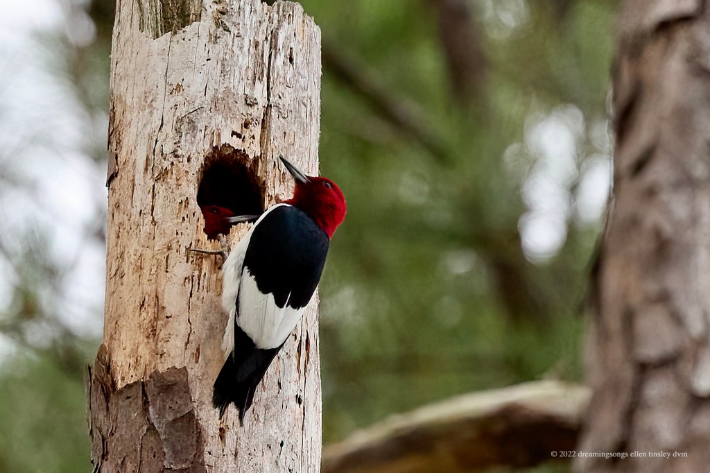 Jordan Lake. This pair of red-headed woodpeckers have started incubation – can you see the parent inside the nest cavity in the 1st photo? Both parents incubate the eggs. The male usually takes night duty. The startled questioning look on the one that was down deep inside and popped out as the other parent disappeared is quite funny.
