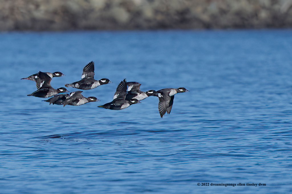 Jordan Lake. Well, it is the last day of November and a windy soggy day at that. So, I thought I would try to brighten up our world a little bit. Here is a flight of bufflehead ducks that Captain Doug and I found, bright in the sunshine of yesterday afternoon, to lighten the mood of this mid-week day.