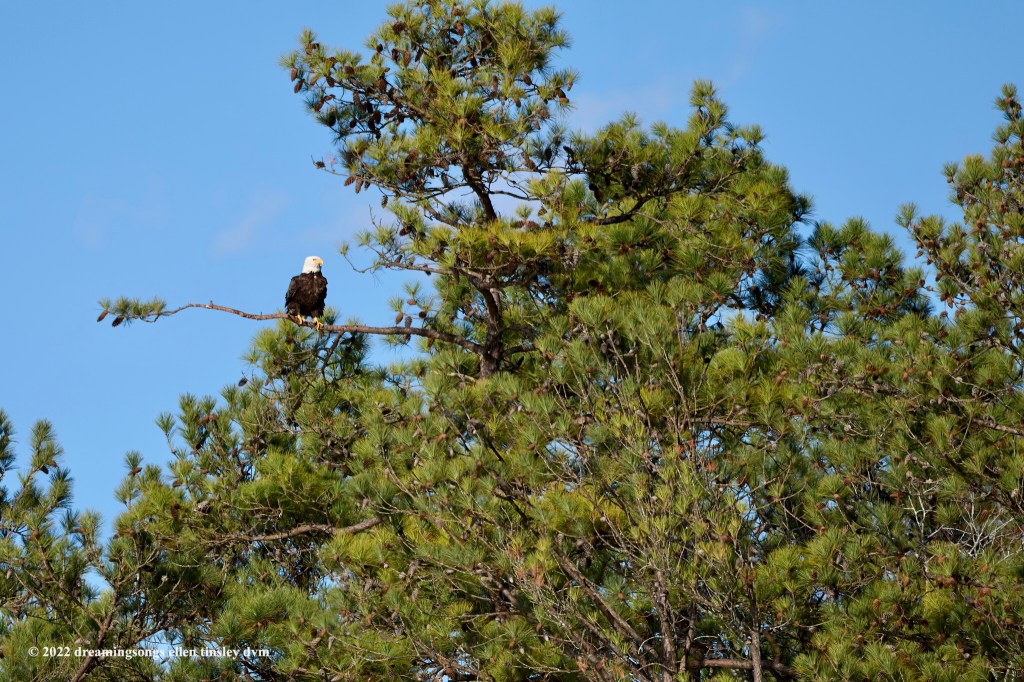 Jordan lake. This is mom Loblolly of Shelter 8, down the shore line from her nest yesterday. I would have liked to have found her and Pitch working at her nest. Some cars were seen turning into the road into Shelter 8 yesterday and perhaps that was why no work was being done on the nest by the parents.