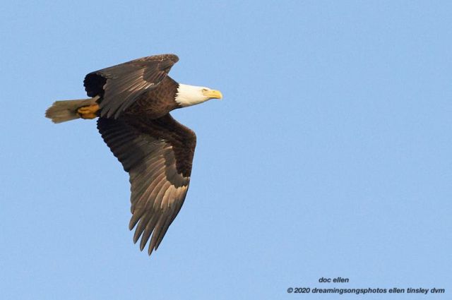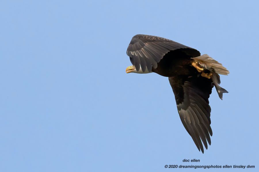 Kate was on a mission to feed her chicks this morning while dad Petruchio waited in the nest with their family. She left her perch about 1000 feet from me and she was in a hurry. From the time she passed me, caught the fish and went past me again, passing back towards the nest, the trip took her all of 20 seconds. I watched Kate catch two more fish in the next 15 minutes. Those chick(s) were well-fed this morning.