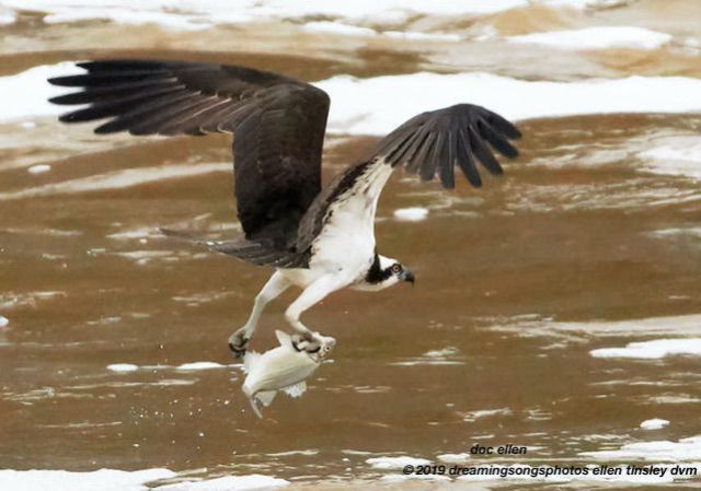 Dad osprey managed the lift and was up and away towards his nest. Whew!