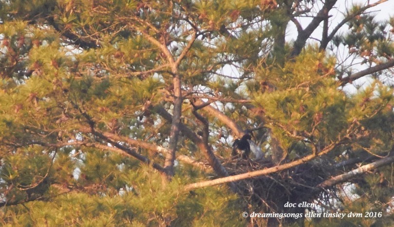 The youngster was willing to wait for one of the male ospreys to fly by with a fish –