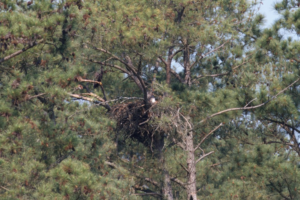 What a delightful surprise this afternoon at Jordan Lake: Captain Doug and I found the parents of the Heron Point bald eagle nest sitting side by side … its about time for this pair to start thinking about the next generation!