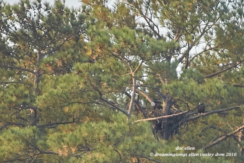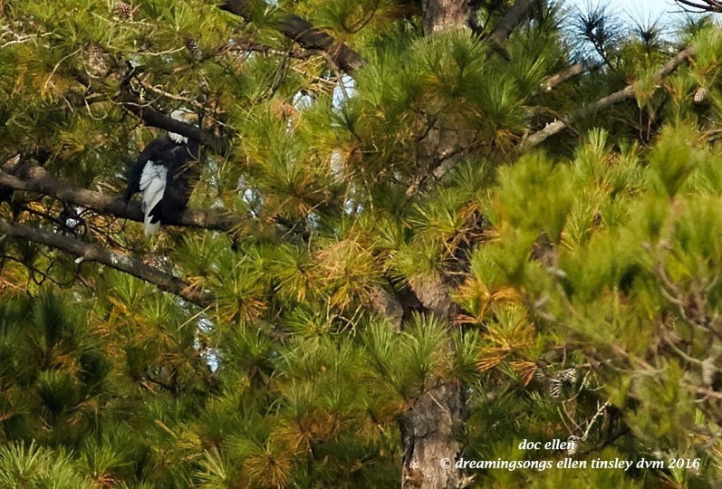 At the Eagle Family nest, I found Petruchio grooming, way to the right of his nest.