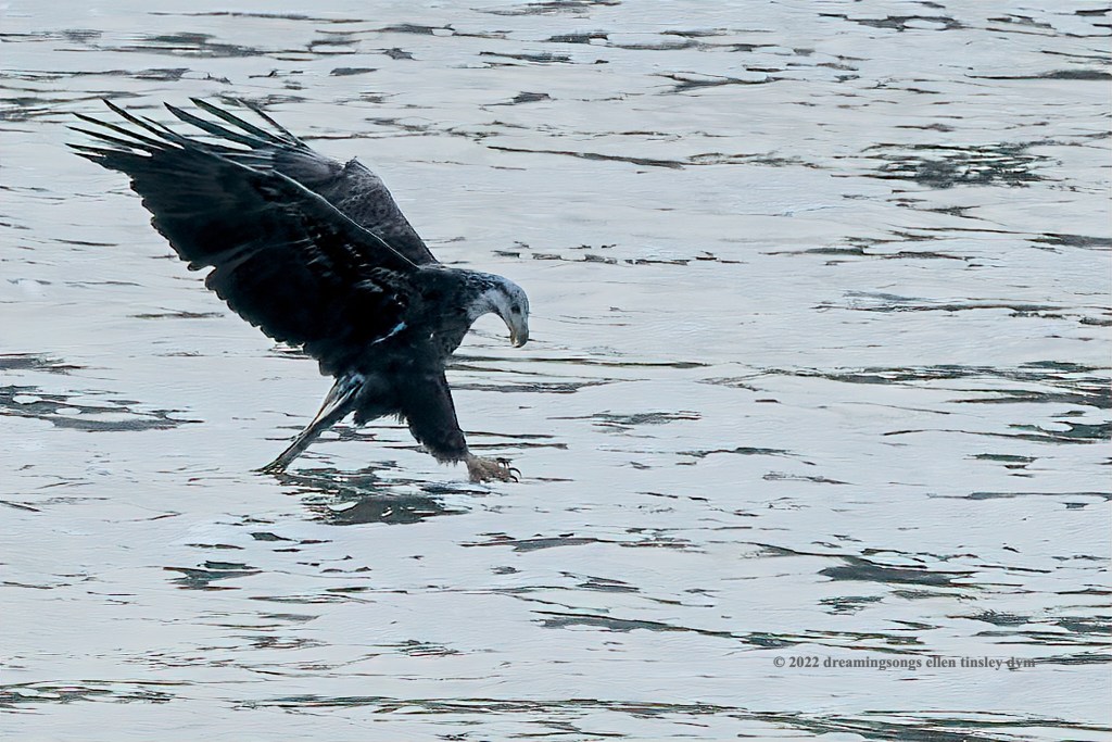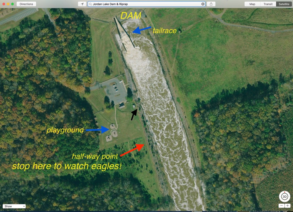 Jordan Lake. The amount of energy expended by one gull chasing another gull just to try to steal the fish… You would think it would be easier just go catch your own fish. However, seabirds often engage in this kind of attempted theft. The fish won this round as it fell back into the river.