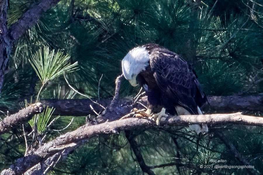Jordan Lake: “Hmmm, it appears I have put my toes in an awkward place. Let me consider this. Naw, I am an eagle and never get into awkward positions. Nope, not me. The toes are just fine, so there. Now, what was I watching…”