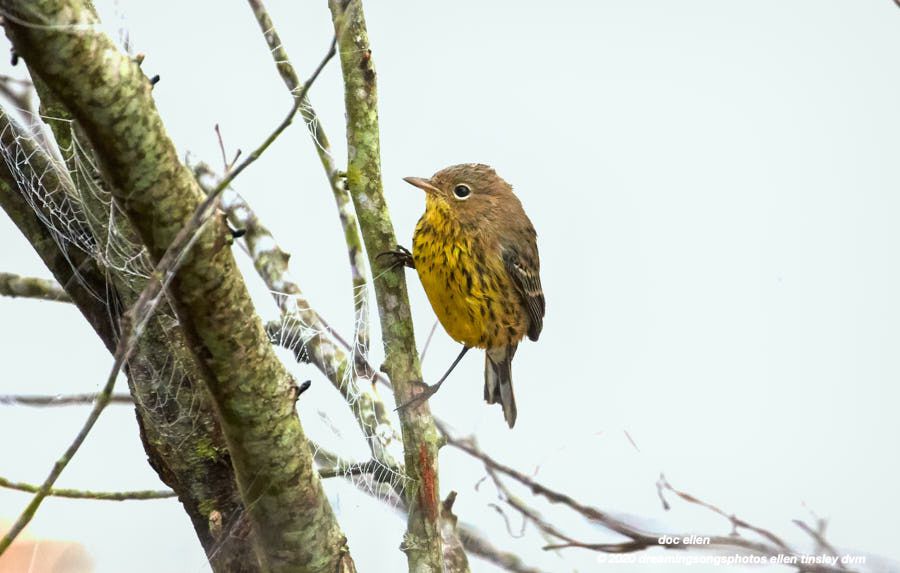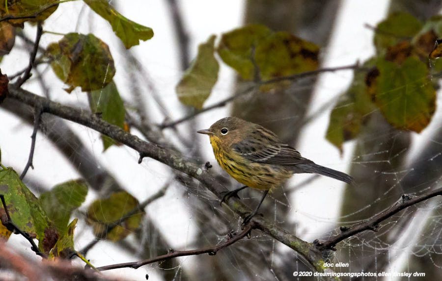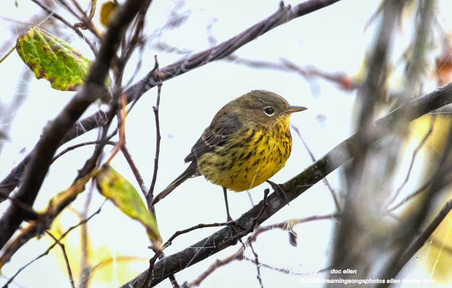Jordan Lake Dam, Haw River: the Kirtland’s warbler was still at the riprap this morning! I caught her feeding on protein packets, aka: spiders, mites, caterpillars and insects. She was quite busy and very intent on feeding up for the next leg of her journey flight to the Bahamas. About half-way through the slide show she gets a small critter of some sort and quickly swallows it and goes right back to hunting. I don’t know if the stormy weather tonight will send her on south or if she will stay another day or two. It was grand watching other birders get their first glimpse of a Kirtland’s warbler – a feast for my heart.