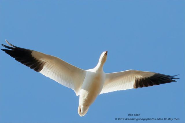 While at the Jordan Lake Dam this morning, a large white bird appeared in with a few gulls that were flying above the Haw River. I believe it to be a Snow Goose. However, it is possible that it is a Ross’s Goose. Both birds are rare in this part of NC (there are thousands of snow geese around Lake Mattamuskeet this time of the year). Both birds also readily hybridize with each other. I didn’t get quite good enough photos to clearly see the beak on this goose and that could have helped with the identification. Enjoy this winter-white visitor!