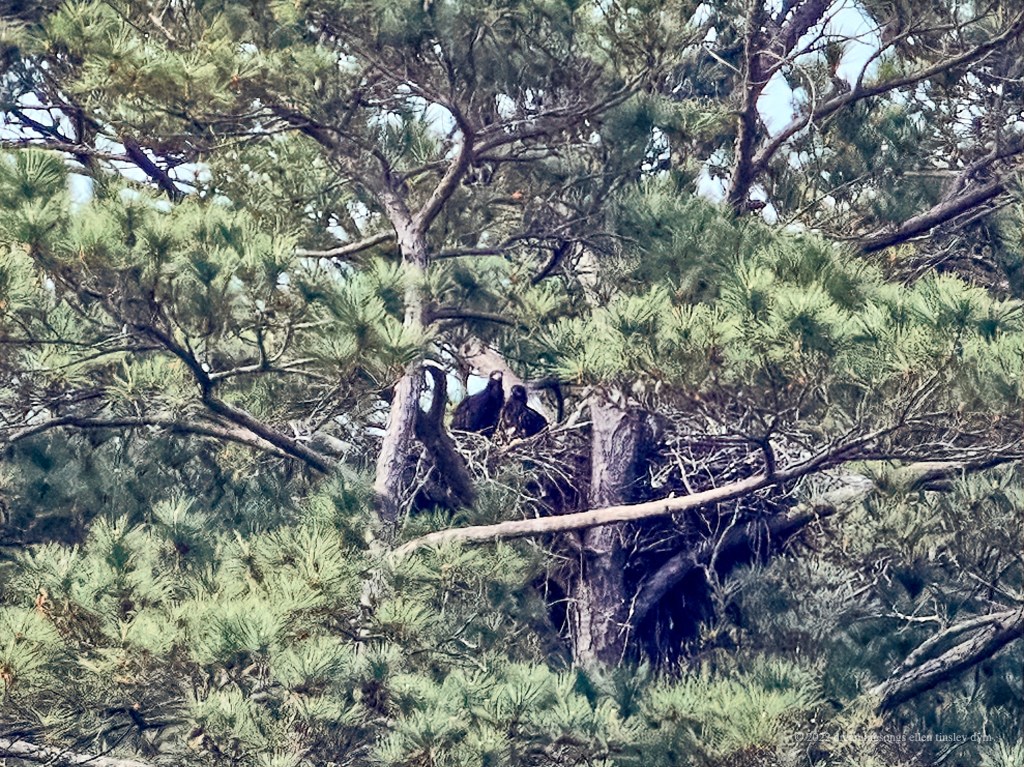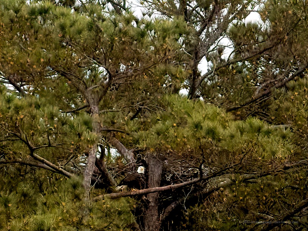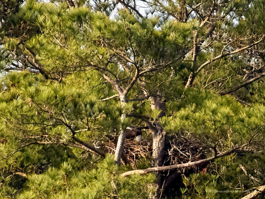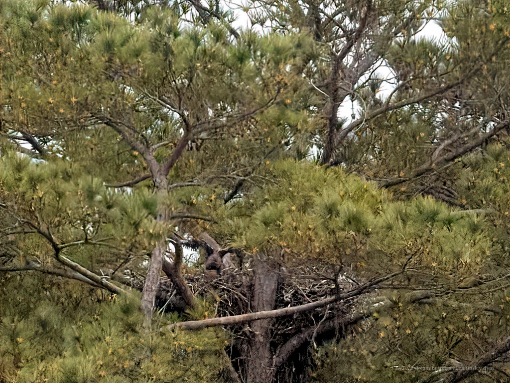 Loblolly at Big Pine nest. The shelter nest is of grave concern to all of us – given the human intrusion the other day and we have not been able to actually see the nest from a boat, we don’t know the status of the chick there. So please hold Loblolly and Pitch and their chick in your heart.