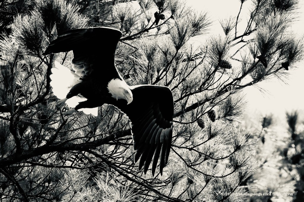 Jordan Lake. Bald Eagle Autumn Song: millions of years of being / sky empress of North America / each fish, tree, human seeing / she passes through autumn’s rising mists / my earth-bound heart now pleading / free me, tell me, how too can I fly?