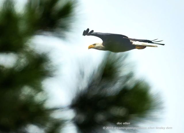 An adult bald eagle was dashing toward dad osprey (unseen here) and wanted his fish.
