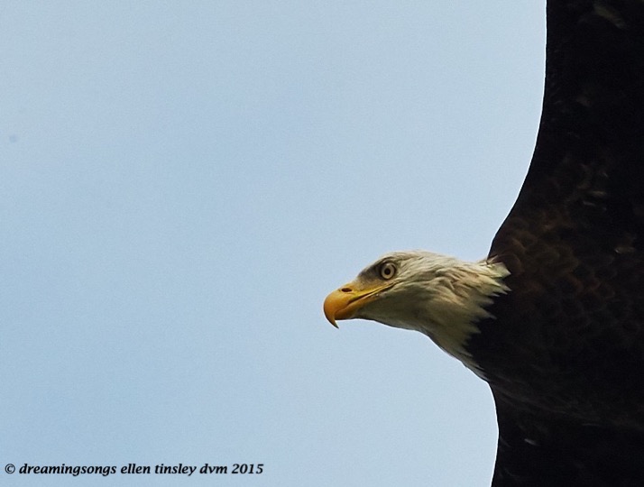 My friend and I were still discussing the strange perch when a second adult eagle came up river.