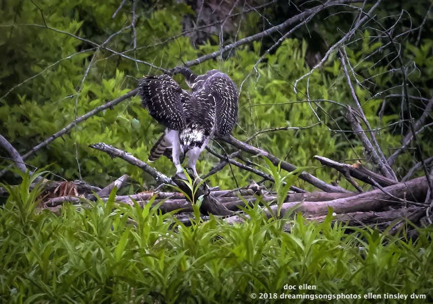 I got to the cove to find Dad osprey sitting on one branch to the left of Brother Piper on the right.