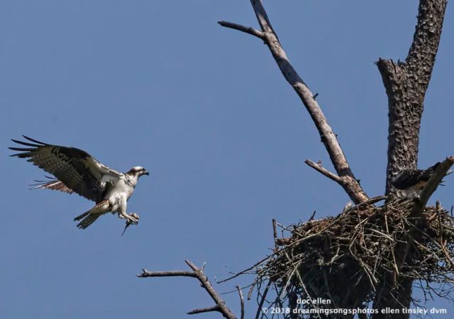 As Dad took flight I heard Broken Feather. She got to the nest as Dad did with the fish.
