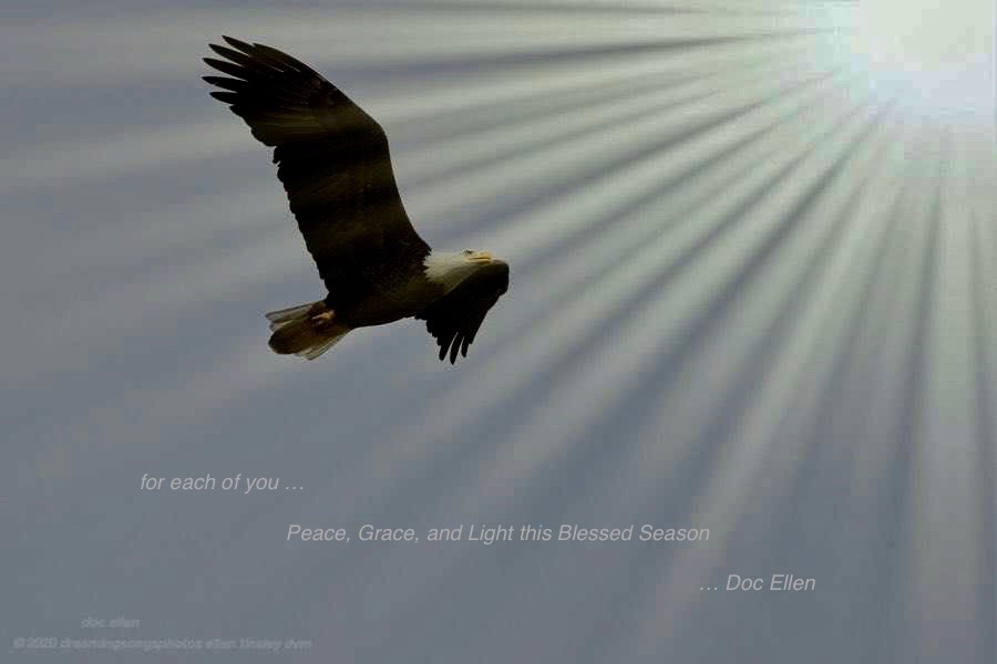 Jordan Lake. Christmas Eve greeting from Doc Ellen and a resident eastern phoebe.