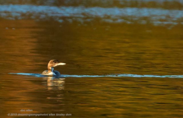I mentioned this morning that I had heard a loon and wondered how long it would take me to see one. Often it is days and days before I spot one. Well, this morning one of the State Park Rangers was watching through his scope and he found 3 of the common loons … but way out of the reach of my camera. Patience almost always pays off. Soon the 3 loons had floated across the lake and gave both of us a good look at their handsome visages.