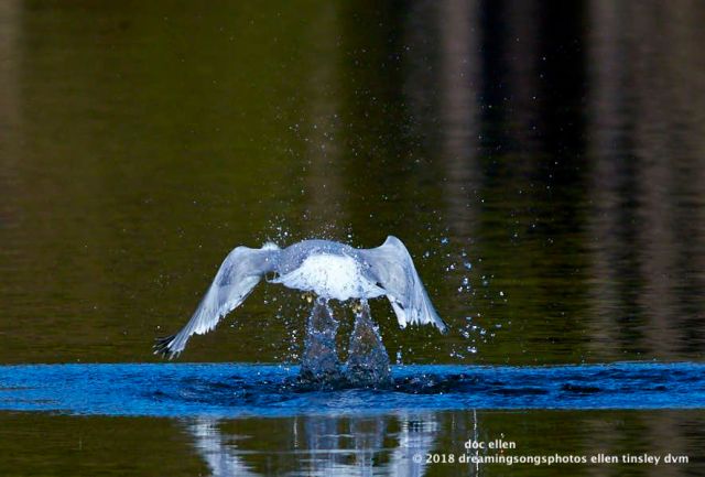 Sometimes going away gives a spectacular view – this is a ring-billed gull.