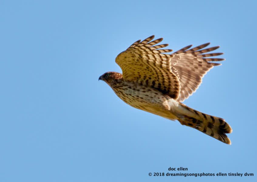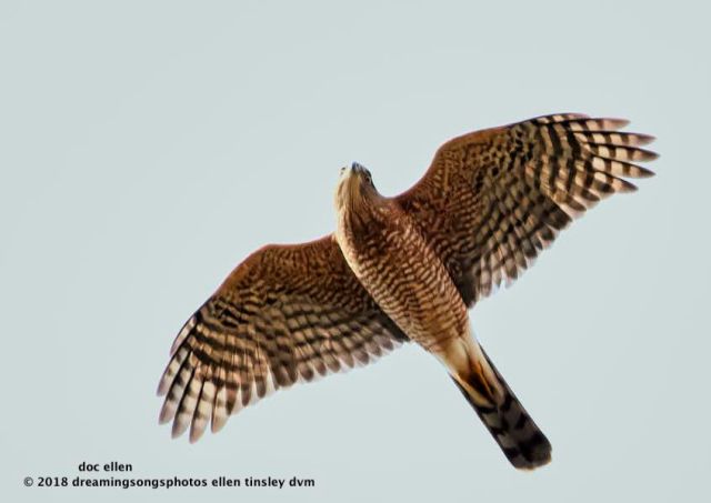 The Cooper’s hawk is small, swift and often takes medium-sized birds while in flight.